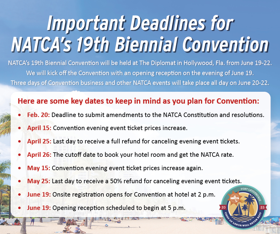 Important Deadlines for NATCA’s 19th Biennial Convention