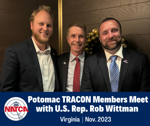Potomac TRACON (PCT) members Taylor Warren and Andy Rhodes recently attended an event with U.S. Rep. Rob Wittman (Va.-1). During the meeting, the congressman expressed his desire to get FAA Reauthorization pushed through with as little […]